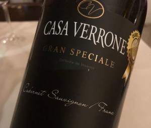 Esse vinho Casa Verrone Gran Speciale é um corte de Cabernet Sauvignon (33%) e Cabernet Franc (67%). Passou por 12 meses de barrica francesa de primeiro uso. Ano 2015, 14% álcool.