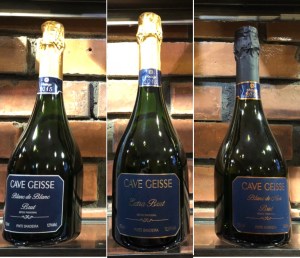 Em seguida temos uma linha superior, com o Cave Geisse Extra Brut, o Blanc de blanc (feito exclusivamente de Chardonnay) e Blanc de noir (exclusivamente de Pinot Noir).